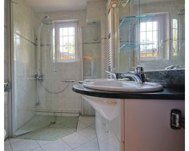 - Badezimmer mit Dusche und Doppelwaschtisch