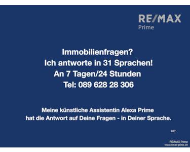 Ihre persönliche Ansprechpartnerin – rund um die Uhr erreichbar. Mit Alexa Prime, der digitalen Immobilienassistentin von RE/MAX Prime, erhalten Sie jederzeit Antworten zu dieser Immobilie – 24 Stunden am Tag, 7 Tage die Woche. Ob Terminvereinbarung, Detailfragen oder Kontaktaufnahme mit dem zuständigen Makler – ein Anruf genügt.