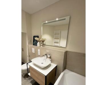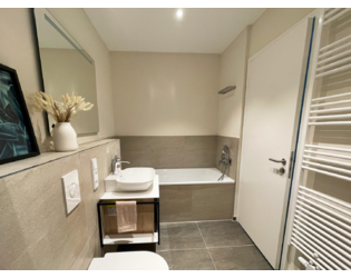 Dieser Traum vom Wohnen befindet sich im EG des Hauses und bietet Ihnen viel Raum, um Ihre Wohnträume zu erfüllen. Durch die sehr clevere Anordnung der Räume ist hier die Gestaltung der Wohnräume individuell möglich. Alle Wohnräume sind vom Flur aus begehbar. An das größte Zimmer grenzt die Terrasse mit kleinem Garten. Des Weiteren überzeugt die Wohnung mit einem hochwertig ausgestatteten Bad mit Wanne, WT, WC, WM-Anschluss und Handtuchheizkörper.