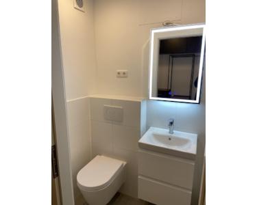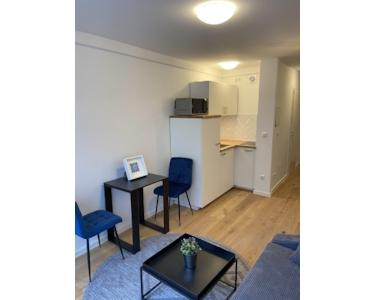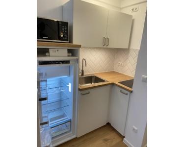 English: Newly Renovated: The apartment has been recently renovated to the highest standards, ensuring a fresh and modern living environment. It features brand new hardwood parquet flooring that adds a touch of elegance and warmth to the space. Equipped with a new fitted kitchen including a refrigerator, stove, and foldable table, it's been made functional and space-efficient. Built-in wardrobes in the hallway provide ample storage space, maintaining the apartment's sleek and tidy appearance. Included as well is a modern and well-appointed bathroom. Enjoy the outdoors from your private balcony, perfect for relaxation and taking in the neighborhood views.