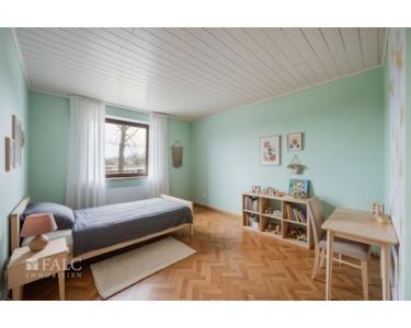 Das Obergeschoss bietet vier gut geschnittene Zimmer sowie ein zusätzliches kleines Zugangszimmer, das sich ideal als Ankleide oder Homeoffice eignet. Ein weiteres Badezimmer sowie ein Balkon mit Zugang vom Schlafzimmer sorgen für zusätzlichen Komfort.