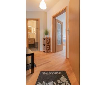 Der Fußboden in der Wohnung besteht aus Echtholzparkett und im Bereich der Küche als Linolboden.