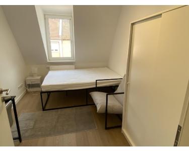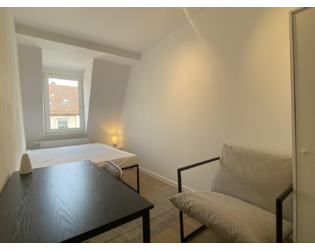 - Vollmöbliert mit Bett, Nachttisch mit Lampe, Schreibtisch, Bürostuhl, Sessel und Kleiderschrank