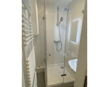 - Modernes Badezimmer mit Dusche, Handtuchheizkörper & LED-Spiegel