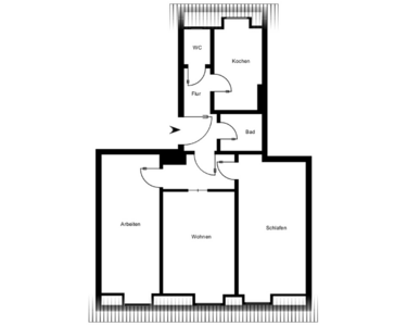 Ebenso gelangen Sie über die rechte Seite des Flurs in die drei separaten WG-Zimmer, welche jeweils über ca. 12 m² Wohnfläche verfügen und bereits möbliert sind. Sie verfügen über ein Bett, einen Nachttisch mit Lampe, einen Schreibtisch, einen Bürostuhl, einen Sessel sowie einen Kleiderschrank. Des Weiteren sind die Kosten für den Stromverbrauch bereits in den Nebenkosten inkludiert.