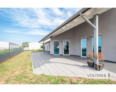 - offener Wohn- Essbereich mit Zugang zur teilüberdachten Terrasse und dem Garten