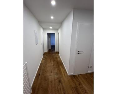 Echtholzparkett, Fliesen und Deckenspots