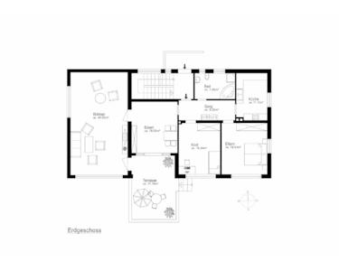 Zwar liegt die letzte große Modernisierung schon etwas zurück, doch wichtige Sanierungsmaßnahmen wurden bereits erledigt: Die Elektrik wurde erneuert, das Dach und die Fenster stammen aus dem Jahr 2000, und auf dem Dach unterstützt die Solarthermie. Der Grundriss der Wohnung ist großzügig und flexibel nutzbar. Vom Eingang aus erreicht man links zunächst das Badezimmer, direkt daneben befindet sich die Küche. Es folgt ein geräumiges Schlafzimmer. Gegenüber der Eingangstür liegt ein weiteres Zimmer, das sich ideal als Büro oder Kinderzimmer eignet. Rechts des Eingangs befindet sich das Esszimmer, das als Durchgangszimmer in das rund 45 m² große Wohnzimmer führt – ein beeindruckender Raum, der sich bei Bedarf auch unkompliziert in zwei Zimmer aufteilen lässt.