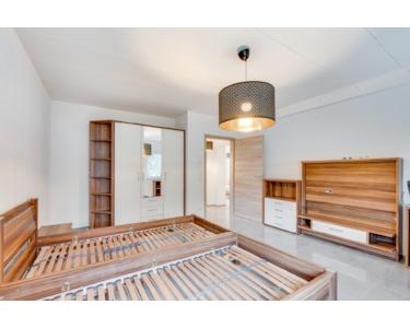Im Obergeschoss befinden sich neben einem zusätzlichen Wohnzimmer zwei Kinderzimmer sowie das Elternschlafzimmer mit integrierter Ankleide. Das Badezimmer auf dieser Etage verfügt über ein Waschbecken, ein Bidet sowie eine großzügige Badewanne, die zum Entspannen einlädt.