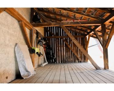 Über der Garage befinden sich weitere Abstellmöglichkeiten, die über die angeschlossene Scheune erreichbar sind – diese bietet zudem Potenzial für eine zukünftige Wohnraumerweiterung.