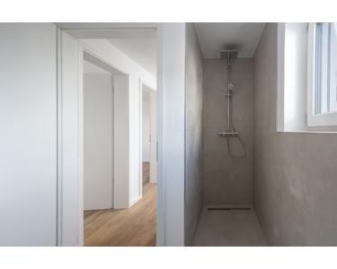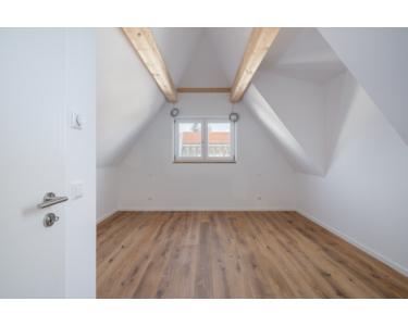 Im Dachgeschoss findet sich ein großzügiges weiteres Schlafzimmer sowie ein Masterbad mit Dusche wieder. Auch hier prägen Helligkeit und klare Linien das Ambiente.