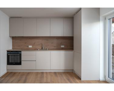 Im Erdgeschoss werden Sie im hellen Eingang empfangen, der direkt in den Wohn- und Essbereich mit einer offenen Küche übergeht. Mit einer Größe von ca. 25m2 ist er ein natürlicher Treffpunkt für den Alltag und bietet direkten Zugang zur Terrasse, die den Wohnraum an warmen Tagen erweitert. Eine hochwertige Einbauküche eines Schreiners wurde bereits eingebaut, sodass Sie nach Ihrem Kauf außer einem Umzug nichts weiter organisieren müssen. Ein separates WC für Gäste, sowie ein Hauswirtschaftsraum ist ebenfalls vorhanden.