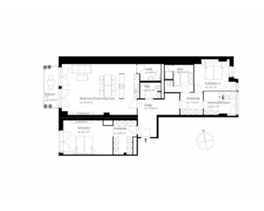 Das lichtdurchflutete Wohnzimmer mit ca. 48,13 m² bietet neben einem großzügigen Wohnbereich auch ausreichend Platz für einen Esstisch sowie eine offene und hochwertige Einbauküche. Zwei große Fenster lassen viel Tageslicht herein, und ein Balkon direkt vor dem Wohnzimmer lädt zum Verweilen ein.