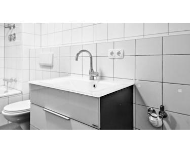 Im Jahr 2015 wurde das Badezimmer modernisiert: Die Bodenfliesen wurden erneuert und ein neuer Waschtisch eingebaut, wodurch sich das Bad zeitgemäß und gepflegt präsentiert.