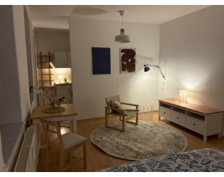 Die Wohnung ist voll ausgestattet. Neben der zweckmäßigen Einbauküche wurde die Wohnung nahezu komplett neu möbliert. Zu Ausstattung gehören unter anderem ein hochwertiger Kleiderschrank (IKEA VISTHUS), ein 140 cm breites Bett (IKEA RAMNEFJÄLL) mit hochwertiger Matratze (IKEA VALEVÅG) plus Auflage, neuer ausklappbarer Tisch mit Stühlen, Sideboard, 4 kg Waschmaschine als Toploader.