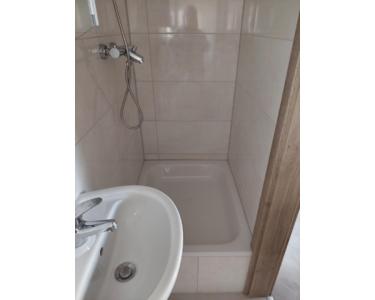 Ein Duschbad mit Tageslicht ist vorhanden. Die Warmwasserbereitung erfolgt mit Durchlauferhitzer. Ein Kämmerchen als Abstellraum steht zur Verfügung. Ein Waschmaschinenanschluß befindet sich im Keller.