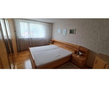 Die Wohnung ist komplett ausgestattet. In der Küche gibt ein Ceran-Kochfeld, Backofen, Spülmaschine, zwei Kaffeemaschinen (Filter und Kapseln), einen Kühlschrank mit Gefrierfach, Esstisch mit Eckbank und Stühlen, Geschirr, Besteck, Töpfe und Pfannen. Im Schlafzimmer befindet ein großer Schrank, ein Doppelbett und ein Sideboard . Bettwäsche und Handtücher sind ebenfalls vorhanden. Im Arbeitszimmer gibt es einen Eckschrank und einen Schreibtisch. Dieses Zimmer kann auch als Kinderzimmer dienen. Das Wohnzimmer verfügt über eine Wohnwand, ein Sofa, ein Sideboard, einen Flachfernseher von Loewe und einen bequemen Fernsehsessel aus Leder. Bad und WC sind getrennt, das Bad verfügt über eine Badewanne und ein Waschbecken. Ebenfalls im Bad gibt es eine Waschmaschine (Bügelbrett ist auch vorhanden, steht im Schlafzimmer). In der Wohnung gibt es auch einen Abstellraum mit Regalen. Der lange Balkon ist ausgestattet mit Gartenmöbeln (Stühle und Tisch) sowie mit dazugehörigen Polstern. Bequem ist der Tiefgaragenstellplatz, aus der Tiefgarage kommt man direkt ins Treppenhaus und mit dem Aufzug in den 5. Stock.