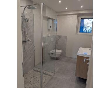Badezimmer: Modernisiert und zeitgemäß ausgestattet.