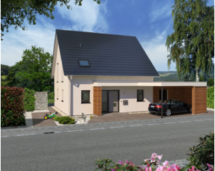 ■ Rohbau (geschlossene Gebäudehülle) mit Fenstern, Haustür1 inkl. Dacheindeckung