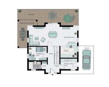 Der realistisch ermittelte Angebotspreis beinhaltet bereits das Grundstück und die Bodenplatte! Hinzuzurechnen sind die obligatorischen Baunebenkosten, wie Grunderwerbsteuer und Notar für das Grundstück sowie Erdarbeiten, Vermessung, Hausanschlüsse, Genehmigungsgebühren. Die genauen Kosten werden nach konkretisiertem Hauswunsch ermittelt.