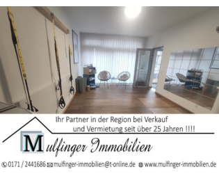 Die angebotene Gewerbefläche mit ca. 52 m² Gesamtfläche wurde zuletzt als Fitnessstudio genutzt, hat aber durch die Raumaufteilung vielfältige Nutzungsmöglichkeiten. So wäre auch ohne Weiteres eine Nutzung als Büro für z.B. Versicherungsmakler, ein Ladengeschäft oder ähnliches denkbar. Neben dem großen Raumen (derzeit Fitnessraum/Sportfläche) gibt es ein Büro und eine Toilette. Das Büro kann ohne großen Aufwand vom vorderen Bereich getrennt werden. Das Lager im hinteren Bereich kann auf Wunsch separat angemietet werden.
