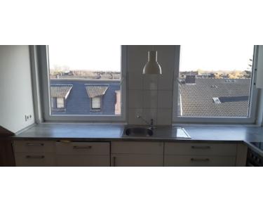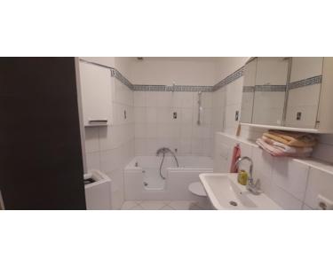 Wir bieten eine schöne, helle, geräumige Wohnung im 4.OG mit Aufzug an. Die Wohnung besteht aus 1 großen Wohnzimmer mit Platz für einen Eßstisch und Zugang zum Balkon, sowie ein Schlafzimmer ebenfalls mit Zugang zum Balkon. Es gibt eine kleine helle Küche mit 2 Fenstern und EBK mit Spülmaschine, eine kleine Abstellkammer, ein Gästebad und ein Hauptbad mit einer Dusch-Badewanne. Die Fenster vom Schlaf- und Wohnzimmer (Balkonseite) haben Rollladen.