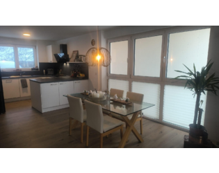 Der großzügig geschnittene Wohn- und Esszimmerbereich mit offener Küche besticht durch die bodentiefen Fenster und den Zugang zum Balkon, der eine wunderschöne Aussicht bietet und auf dem Sie den ganzen Tag die Sonne genießen können.