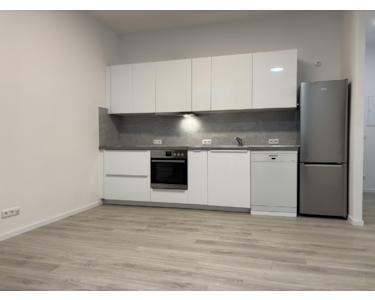 Der Wohn-Essbereich hat eine vollständige neue Einbauküche mit Spülmaschine, Backofen, Ceranfeld, Kühl- und Gefrierschrank und Dunstabzugshaube. Zusätzlich hat die Wohnung einen neuen Waschtrockner.