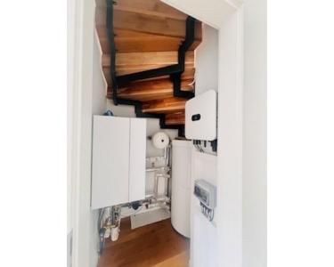 Das Gebäude wird durch eine Luft-Wärmepumpe beheizt und verfügt über eine Photovoltaikanlage auf dem Dach. Eine Grünbeck-Enthärtungsanlage sorgt für weiches Wasser und schont Hausgeräte.