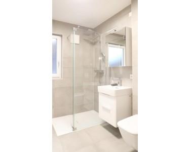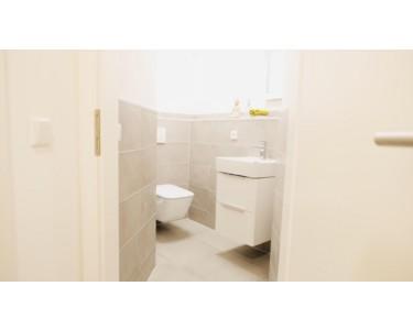 •Hochwertige Feinsteinfliesen in Bad und WC