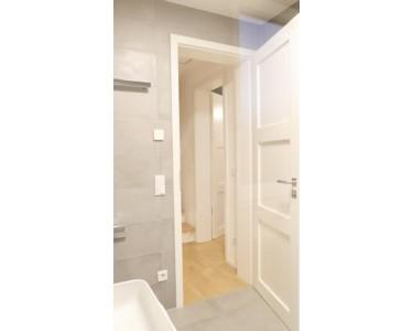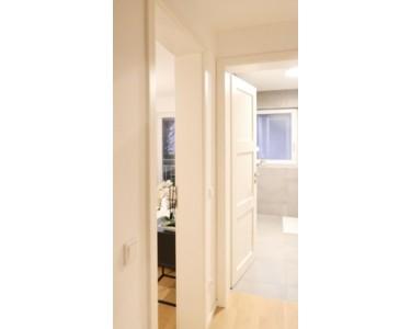 •Hochwertige weiße Kassettentüren mit Edelstahl-Türgriffen