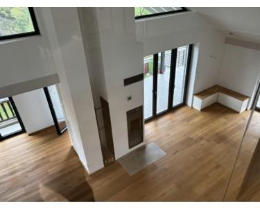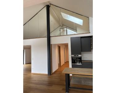 Diese außergewöhnliche 4-Zimmer-Dachgeschosswohnung mit ca. 160 m² Wohnfläche und 20m² Nutzfläche befindet sich im 3. Obergeschoss eines hochwertigen Dreifamilienhauses, das 2020 in Massivholzbauweise errichtet wurde. Das Haus besticht durch seine nachhaltige Architektur, hochwertige Materialien und die ruhige, naturnahe Lage.