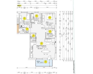 Gebäude: Bei dem 8- Parteienhaus handelt es sich um einen Neubau, die Wohnungen sind zum Erstbezug. Das Haus wird nach dem Effizienzhaus 55 Standard (mit automatischer Belüftungsanlage) gebaut und über eine ökologisch nachhaltige Wärmepumpe beheizt. Das Mauerwerk besteht aus 42,5er Ziegelstein, welches mit Wärmedämmmaterial verfüllt ist. Die Zwischendecken sind aus Stahlbeton. Die Böden sind jeweils ebenfalls gedämmt und mit Design – Vinylboden versehen. Die Fenster der Wohnung sind Kunststofffenster mit 3-Scheiben Isolierverglasung, die Türen und Türzargen sind weiß gehalten.