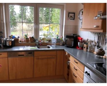 Erdgeschoss mit geräumiger Küche mit Einbauküche und Platz für einen Esstisch, inkl. allen Geräten, wie z.B. neuer Herd, neuer Kühlschrank und Spülmaschine.