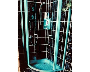 Ebenso würde in dem grossen , schwarz-mint farbenen Bad der riesige Bad-Hängeschrank mit im Haus verbleiben, falls gewünscht (hier war der Neupreis ca 8000€)