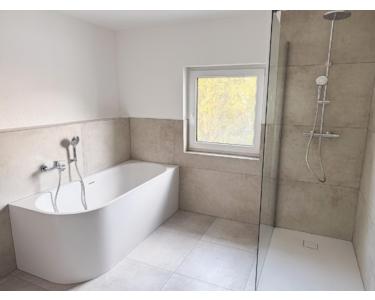 - Tageslichtbad mit Badwanne, begehbarer Dusche und Waschmaschinenanschluss