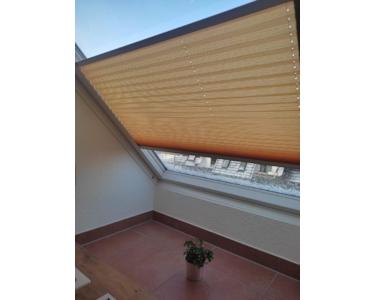 -Holzfenster mit Zweischeiben-Isolierverglasung. Velux-Fenster in Schlaf-, Esszimmer, Küche und Bad. Im Schlafzimmer Velux-Fenster mit Solar-Rollladen.