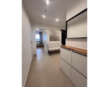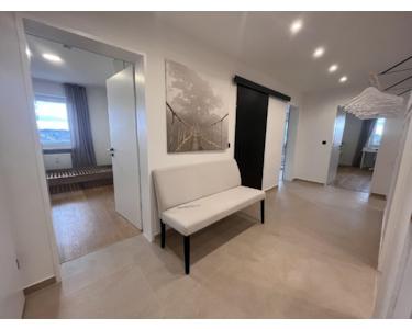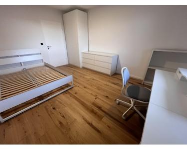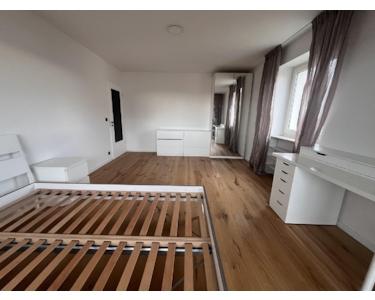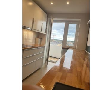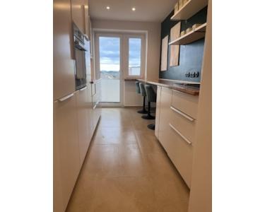 Die Wohnung wurde aufwendig saniert - siehe Fotos. Der Eingangsbereich und ums Eck gehende Flur ist so großzügig, dass theoretisch sogar ein Essplatz im Flur eingerichtet werden könnte. Eine kleine Abstellkammer ist vorhanden. Geradeaus liegt ein großes 'Kinderzimmer" mit einem Fenster zum Südbalkon. Das neue Bad (mit WC) liegt direkt neben dem getrennten WC und gegenüber der Küche, die mit einer Schiebetür geschlossen werden kann. Durch die Küche gelangt man zum Südbalkon mit herrlicher Sicht zu den Alpen. Zum Westen gerichtet ist ein großes Schlafzimmer und ein großes Wohnzimmer. Beide Zimmer haben einen riesigen Balkon, welcher durch das Wohnzimmer zugänglich ist. Das Wohnzimmer könnte theoretisch geteilt werden, da es im Wohnzimmer zusätzlich zur West-Fenster-/Türfront auch ein Süd-Fenster gibt. Natürlich gehört zur Wohnung noch ein großer absperrbarer Keller.