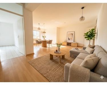 Diese renovierte 3-Zimmer-Wohnung im Untergeschoss verbindet eine angenehm helle Wohnatmosphäre mit einem direkten Zugang ins Grüne – eine Kombination, die in dieser Lage selten zu finden ist. Schon beim Betreten empfängt eine offene, freundliche Diele, die mit einem separaten Gäste-WC ausgestattet ist. Dadurch lässt sich der private Wohnbereich ideal vom Gästebereich trennen, was den Komfort im Alltag deutlich erhöht. Von der Diele gelangt man in den großzügigen, lichtdurchfluteten Wohn- und Essbereich, der durch eine große Fensterfront einen schönen Blick ins Freie bietet. Der direkte Zugang zur eigenen Terrasse und dem kleinen Garten ist eines der Highlights dieser Wohnung: Ein Ort, an dem man frische Luft genießen, morgens entspannt Kaffee trinken oder warme Sommertage direkt vor der eigenen Tür verbringen kann.