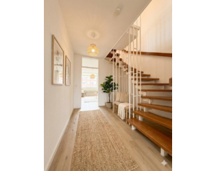 Diese renovierte Maisonettewohnung begeistert sofort durch ihre großzügige, helle und moderne Atmosphäre. Schon der einladende Eingangsbereich vermittelt einen freundlichen ersten Eindruck und bietet mit einem separaten Gäste-WC einen echten Komfortvorteil im Alltag wie auch beim Empfang von Besuchern. Von der Diele aus gelangt man sowohl in die Küche als auch in den offenen Wohn- und Essbereich. Die Küche verfügt über eine praktische Abstellkammer, die wertvollen Stauraum für Vorräte und Haushaltsgeräte schafft. Der weitläufige Wohn- und Essbereich zeichnet sich durch viel Licht und eine offene Gestaltung aus und bietet über den ersten Balkon einen direkten Zugang ins Freie – ideal für gesellige Sommerabende, entspannte Mahlzeiten im Freien oder ruhige Momente nach Feierabend.