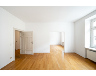 Empfangen wird man im altbautypischen, weitläufigen Flur. Dieser verbindet alle Räumlichkeiten der Wohnung. Rechter Hand öffnet sich das einladende Wohnzimmer, das derzeit über einen Durchbruch mit dem angrenzenden Esszimmer verbunden ist. Diese Verbindung schafft ein offenes Raumgefühl und eignet sich ideal für gesellige Stunden mit Familie oder Freunden. Auf Wunsch lassen sich beide Räume wieder trennen, sodass das Esszimmer auch als Arbeits- oder Gästezimmer genutzt werden kann. Das Schlafzimmer bietet Ruhe und Rückzug, großzügig geschnitten und von natürlichem Licht erfüllt. Auf der gegenüberliegenden Seite liegt die geräumige Küche mit Platz für einen kleinen Esstisch. Von hier aus führt eine Tür auf den Balkon, der sich zum Innenhof orientiert und einen stillen, geschützten Platz im Freien bietet. Perfekt für den Kaffee am Morgen oder einen Moment der Ruhe am Abend. Das Tageslichtbadezimmer ist großzügig gestaltet und mit Badewanne, separater Dusche und einem Anschluss für die Waschmaschine ausgestattet. Ein trockenes Kellerabteil rundet das Angebot ab.