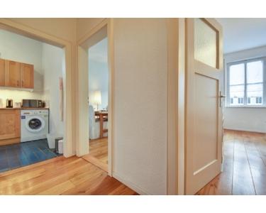 Die Wohnung besitzt das typische Jugendstilambiente mit hohen Decken, weißen Kassettentüren und Dielen aus Eichemassivholz.