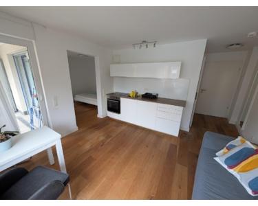Apartment B ist vollmöbliert, ebenfalls mit einer neuwertigen Küchenzeile ausgestattet und bietet zusätzlich einen Balkon zur ruhigen Außenseite des Gebäudes – ideal für entspannte Stunden im Freien.