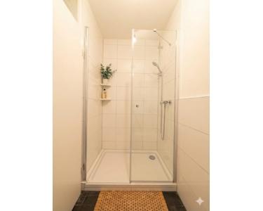 An den Wohn- und Essbereich schließt sich ein eigener Küchenraum an, der ebenfalls hell gestaltet ist und eine angenehme räumliche Trennung zur Wohnebene ermöglicht. Ein kleiner Flur verbindet den Wohnbereich mit den privaten Räumen. Von hier aus erreicht man sowohl das Kinderzimmer oder Büro als auch das großzügige Elternschlafzimmer. Das absolute Highlight: Das große Badezimmer mit Badewanne ist direkt über eine Durchgangstür mit dem Elternschlafzimmer verbunden. Dieser private Zugang bietet einen besonders hohen Wohnkomfort, da nächtliche Wege kurz bleiben und man das Bad diskret nutzen kann, ohne den Flur zu durchqueren. Gleichzeitig ist das Badezimmer weiterhin über den Flur erreichbar, sodass es flexibel genutzt werden kann. Insgesamt präsentiert sich die Wohnung hell, offen und mit einem modernen Stil, der durch klare Linien und hochwertige Renovierungsarbeiten eine sehr angenehme Wohnatmosphäre schafft.