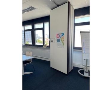 270 qm aufgeteilt in mehrere Räume, teils mit hochwertigen Schiebewänden, sodass bei Bedarf schnell ein neues Arbeitsumfeld geschaffen werden kann.