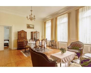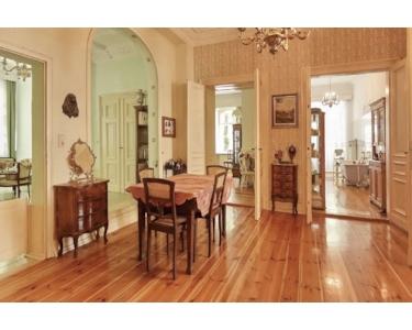 Im Inneren entfaltet das Haus seine ganze Größe: Auf rund 523 m² Wohnfläche öffnen sich weitläufige Räume, deren historische Seele durch die letzte umfassende Modernisierung im Jahr 2014 neu erweckt wurde. Hohe Decken, feine Details, handverlesene Materialien und zahlreiche erhaltene Originalelemente schaffen ein Ambiente, das gleichermaßen einlädt, inspiriert und verzaubert. Mindestens sechs Schlafzimmer und drei außergewöhnlich gestaltete Badezimmer bieten großzügigen Raum für Mehrfamilien- oder repräsentatives Wohnen. Jede Etage wirkt wie ein eigenes Kapitel – voller Licht, Atmosphäre und besonderer Momente.