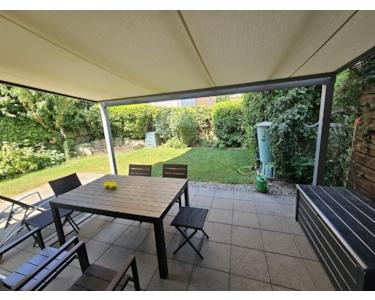 Die großzügige, glasüberdachte Terrasse mit elektrischer Markise lädt zum Relaxen und Grillen ein und verbindet das Wohnzimmer mit dem schön angelegten, grünen Garten. Ein weiteres Highlight ist der schöne Ost-Balkon, der direkt vom Essplatz und der Küche zugänglich ist. Ein Gartenhäuschen mit kleiner Photovoltaik-Anlage bietet zusätzlichen Stauraum und reduziert die Stromrechnung.