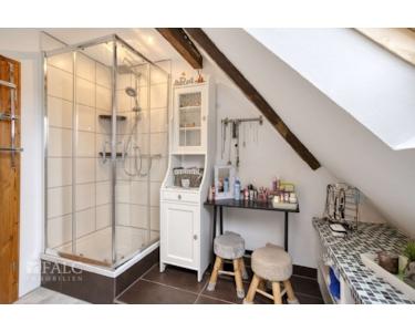 Das Herzstück der Immobilie bildet die großzügige Hauptwohnung im Haupthaus. Sie erstreckt sich über das erste Obergeschoss und das Dachgeschoss und bietet auf rund ca. 150,35 m² viel Raum für individuelles Wohnen. Im ersten Obergeschoss empfängt ein weitläufiger Wohnbereich mit Kamin, der eine behagliche Atmosphäre für warme, wohlige Abende schafft. Die angrenzende, helle Küche verfügt über einen direkten Zugang zur großen Terrasse – ideal für gesellige Runden und entspannte Stunden im Freien. Ein Schlafzimmer, ein Gäste-WC sowie ein großes, modernes Badezimmer mit freistehender Badewanne und Dusche laden hier zum Entspannen ein. Eine einladende Diele mit offenem Treppenaufgang verbindet die beiden Wohnebenen auf stilvolle Weise. Im Dachgeschoss öffnet sich unter dem charmanten Fachwerkdach ein wahres Kinderparadies. Zwei geräumige Zimmer mit hohen Decken bieten reichlich Platz zum Spielen, Lernen und Träumen. Eines der Zimmer überrascht mit einer originellen Hochebene, die als Spielecke genutzt werden kann. Ein weiteres Tageslichtbad mit Dusche sorgt dafür, dass auch auf dieser Ebene der Komfort nicht zu kurz kommt.