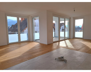 Helle 128m² große 4-Zimmer-Wohnung im 1. OG eines Mehrfamilienhauses, Wohn-Esszimmer mit offener Küche ca. 45m², 3 weitere Zimmer je 15,5 - 20m², große Loggia, kleiner Hauswirschaftsraum plus zusätzliches Kellerabteil. Schöner Blick aus dem Wohnzimmer Richtung Osten (Schauinsland), Richtung Westen zur Kirche und zum Schönberg, Erstbezug, barrierefrei, seniorengerecht, Aufzug, Stellplatz in der Tiefgarage, Effizienzhaus KfW 40-Standard, niedrige Nebenkosten.