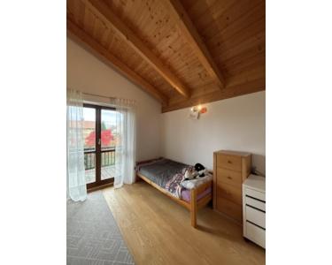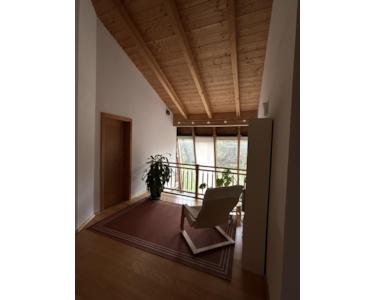 Vom Wohnzimmer aus führt eine Treppe mit Holzstufen ins Obergeschoss. Hier wird man von der gemütlichen Galerie mit offenem Sichtdachstuhl in Empfang genommen. Von hier aus gelangt man in das geräumige Badezimmer mit Dusche und Badewanne, in ein Extra WC und in drei Schlafzimmer, die auch als Büro oder Gästezimmer genutzt werden können.